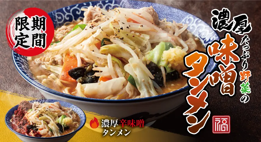 11月20日(木)から、期間限定メニュー『たっぷり野菜の濃厚味噌タンメン』『たっぷり野菜の濃厚辛味噌タンメン』を販売いたします。